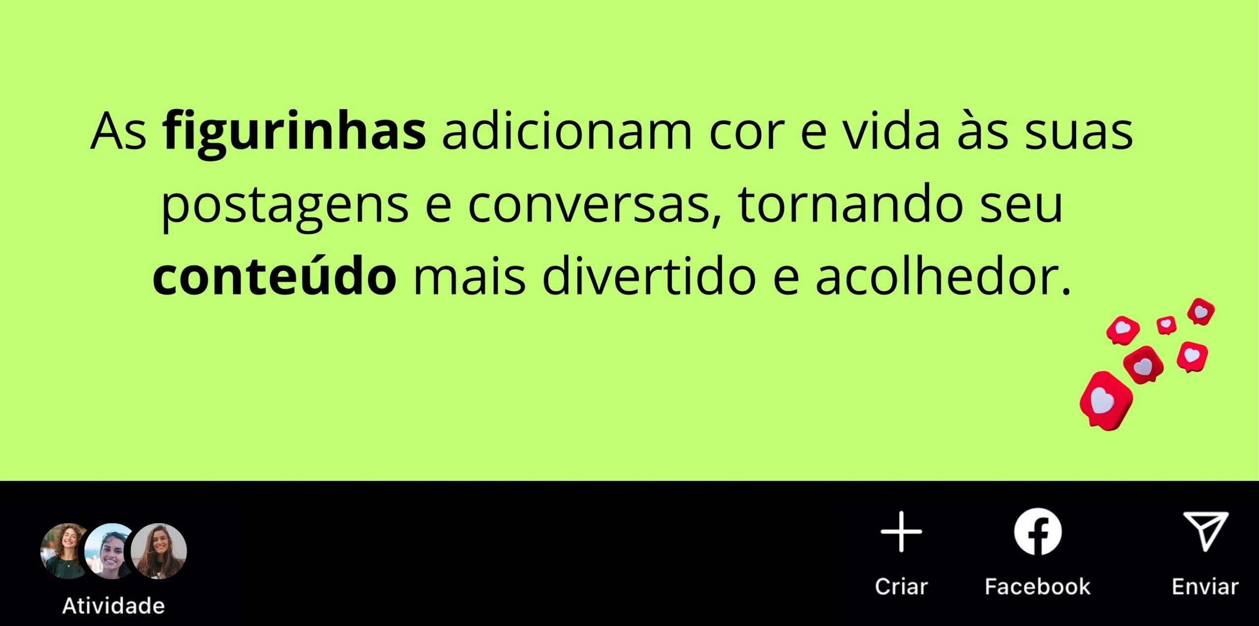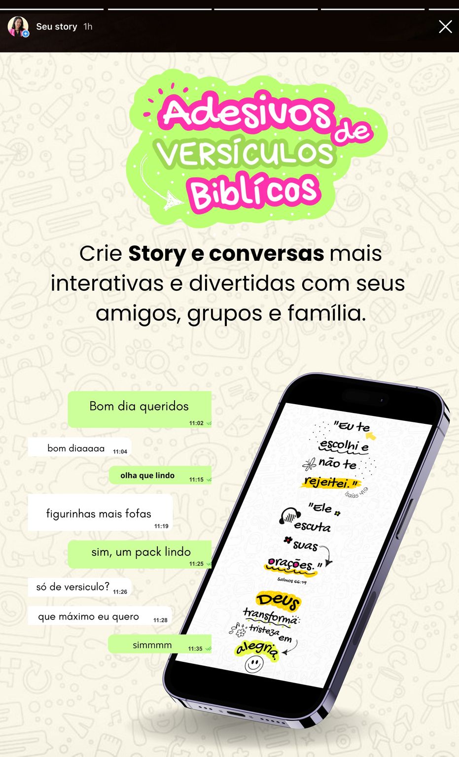 Você pode usar as figurinhas no WhatsApp e nos stories do Instagram. Temos aulas ensinando como usar e como criar figurinhas no WhatsApp.