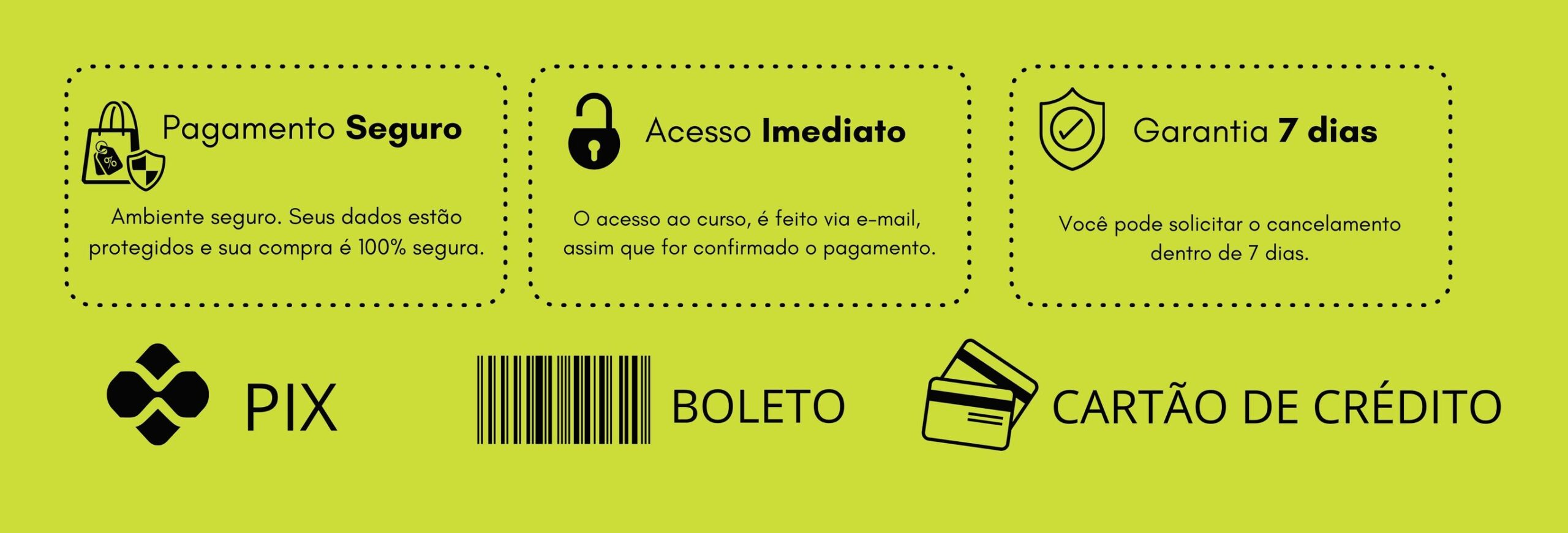 Você pode comprar via Cartão de Crédito, PIX ou Boleto.